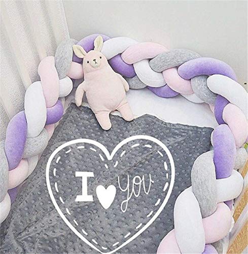 Rart 赤ちゃんのベビーベッド バンパー, 手作り編みこみ結びぬいぐるみ保育園ゆりかご装飾 編みこみ枕 柔らかい寝具ベビーベッド三つ編みクッション安全プロテクター -E 220cm(87inch)