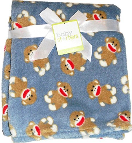 Super Soft 30 x 36 Sock Monkey Fleece Blanket - Blue Gray by Baby Starters