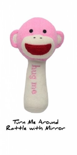 Sock Monkey " hug me」Turn & See 。ミラーRattle – ピンク&アイボリー