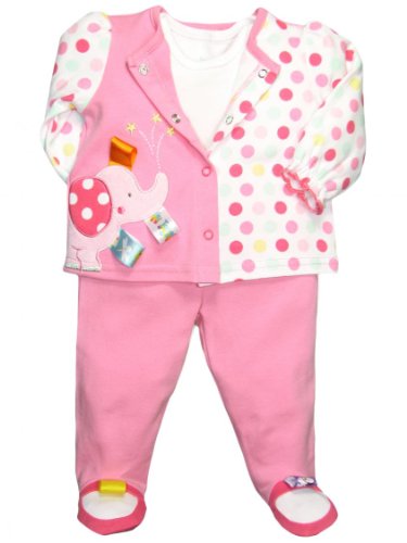 Taggies Baby Girl 3 Piece Elephant Footed Pants Outfit by Taggies カラー: ピンク