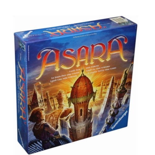 Asara is a strategic board game for 2-4 players ages 9+, who assume the roles of famous architects. Players compete to build the highest, grandest and largest number of towers over four rounds of play. Each step of the way, the architects must keep their