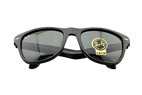 The Ray-Ban Folding Wayfarer takes the timeless look of the wayfarer and adds a couple of hinges to make a sunglass that works well and can be stored in the average men's shirt pocket! The hinges are set into the frame so that when open it looks almost exactly like the classic wayfarer.