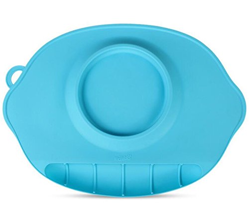 RayMoon お食い始め ランチマット シリコン製 幼児用 持ち運び 吸盤付き 感温スプーン無料 ブルー