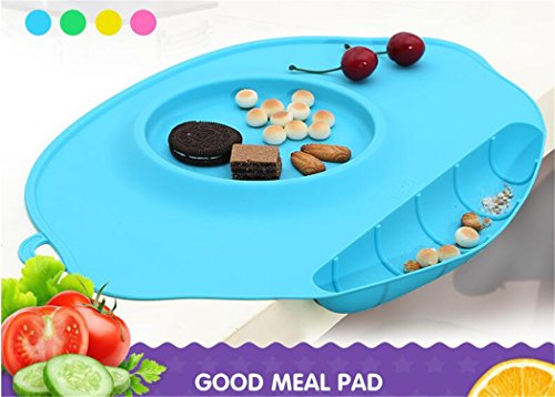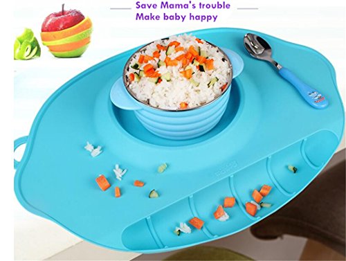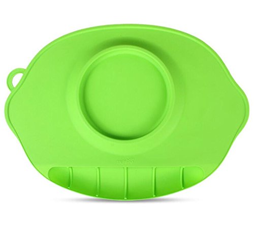 RayMoon お食い始め ランチマット シリコン製 幼児用 持ち運び 吸盤付き 感温スプーン無料 グリーン