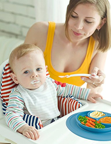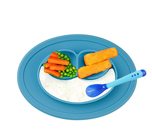 RayMoon お食い始め ランチマット シリコン製 ベビー用 吸盤付き 感温スプーン無料 ブルー