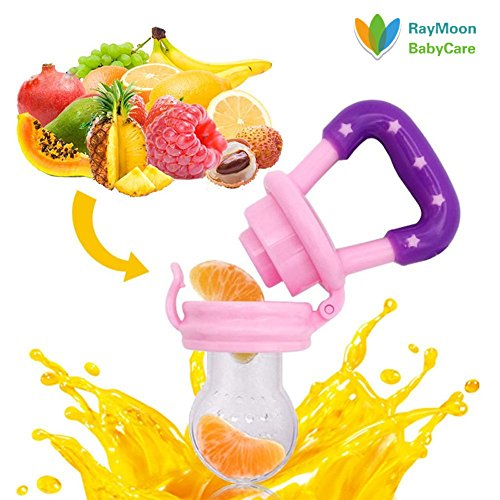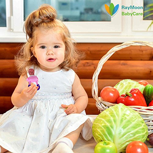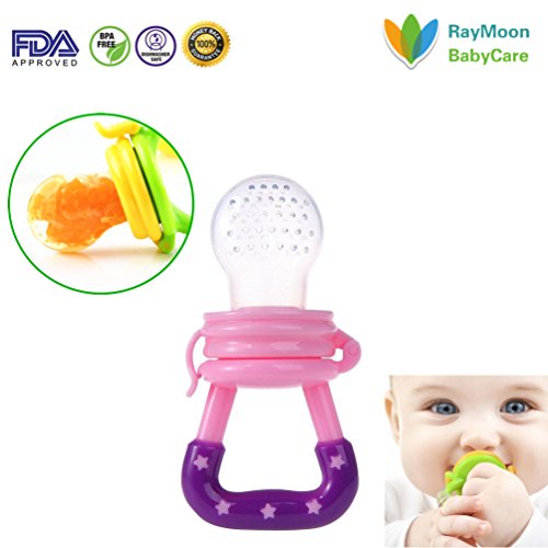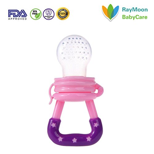 Raymoon ベビー用 かわいい 乳首 おしゃぶり レッシュフルーツ 野菜 果物 咬み袋 フィーダー 離乳食 出産祝い ?贈り物 シリコン 赤ちゃん用 栄養摂取 大容量 歯がため パープル Sサイズ