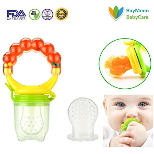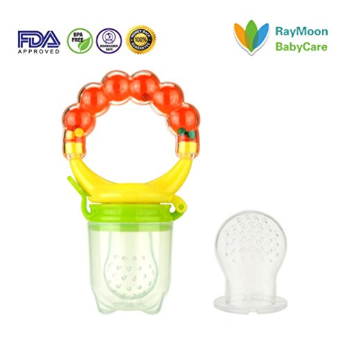 Raymoon ベビー用 かわいい 乳首 おしゃぶり レッシュフルーツ 野菜 果物 咬み袋 離乳食 出産祝い 贈り物 シリコン 赤ちゃん用 栄養摂食 オレンジ