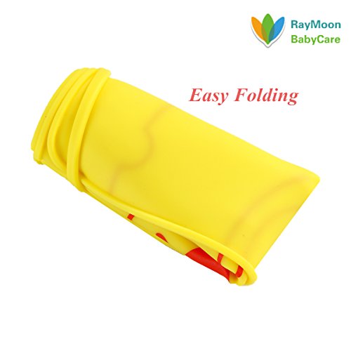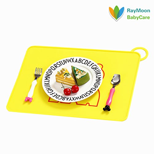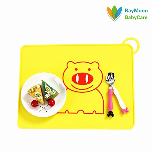 Raymoon ベビー用 お食事マット ランチョンマット ランチマット シリコン製 子供給食用 かわいい動物柄 食べこぼしキャッチ 撥水 防汚 丸洗い 持ち運び便利 滑り止め クマ イエロー