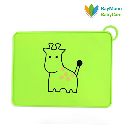 Raymoon ベビー用 お食事マット ランチョンマット ランチマット シリコン製 子供給食用 かわいい動物柄 食べこぼしキャッチ 撥水 防汚 丸洗い 持ち運び便利 滑り止め シカ グリーン