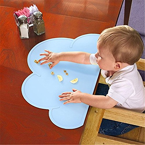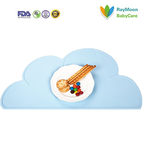 Raymoon ベビー用 可愛い 雲型 食事マット シリコン キッズ ランチョンマット テーブルマット 撥水 食べこぼし防止 子供用 持ち運び便利 水色
