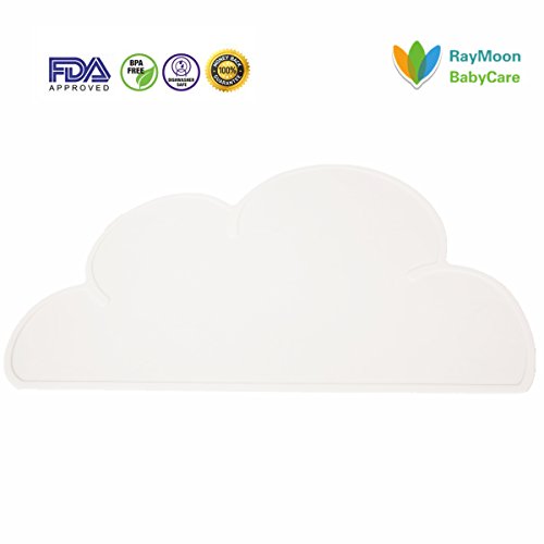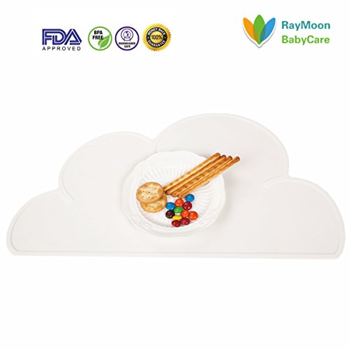 Raymoon ベビー用 可愛い 雲型 食事マット シリコン キッズ ランチョンマット テーブルマット 撥水 食べこぼし防止 子供用 持ち運び便利 ホワイト