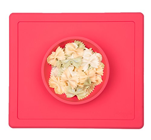 Raymoon 子供用 食器 お食事マット 一体式 ハッピボウル ランチョンマット ランチプレート シリコン 離乳食 ベビー食器 赤ちゃん 防水 滑り止め 可愛い 出産祝い スプーン フォーク付き レッド