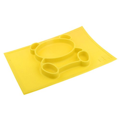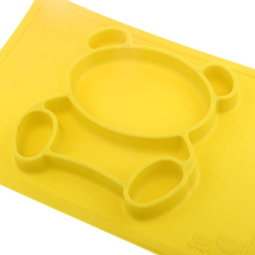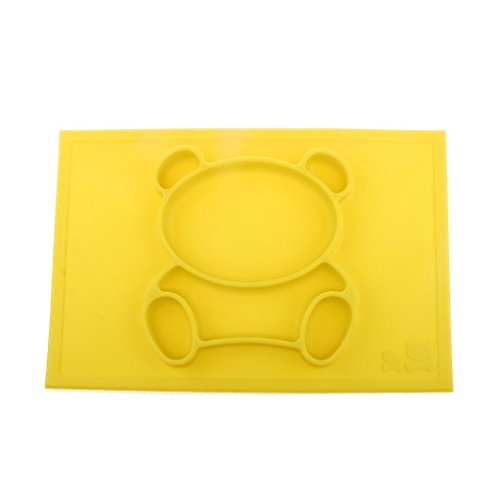 Raymoon ベビー用品 食器 お食事マット 一体式 ハッピボウル ランチョンマット ランチプレート シリコン 離乳食 ベビー食器 赤ちゃん キッズ 防水 滑り止め 食べこぼし防止 出産祝い 可愛いパンダ型 感温スプーン付き イエロー