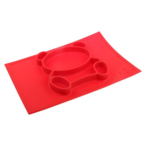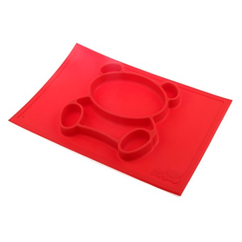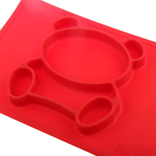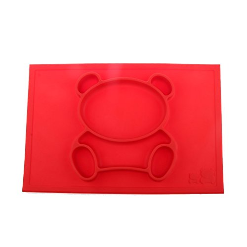 Raymoon ベビー用品 食器 お食事マット 一体式 ハッピボウル ランチョンマット ランチプレート シリコン 離乳食 ベビー食器 赤ちゃん キッズ 防水 滑り止め 食べこぼし防止 出産祝い 可愛いパンダ型 感温スプーン付き レッド