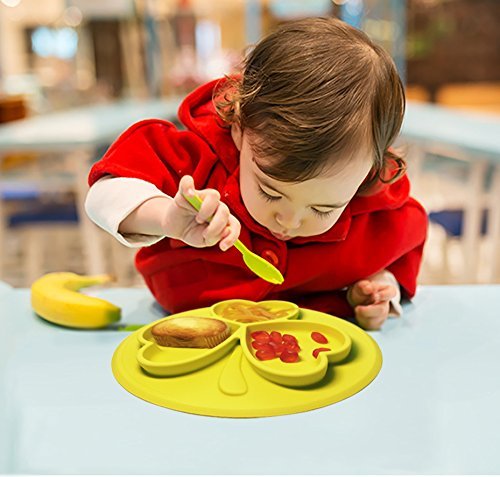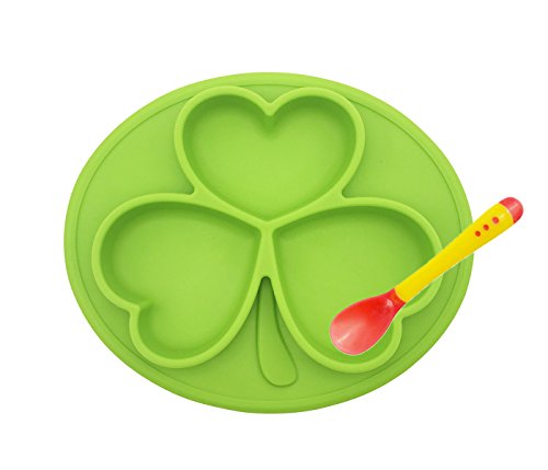 Raymoon ベビー用品 食器 お食事マット 一体式 ランチョンマット ランチプレート シリコン 離乳食 ベビー食器 キッズ 防水 滑り止め 可愛い 出産祝い 贈り物 感温スプーン付き グリーン