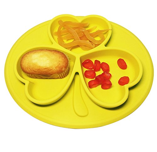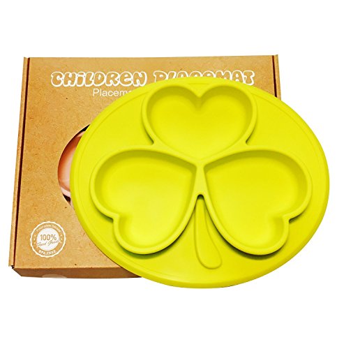 Raymoon ベビー用品 食器 お食事マット 一体式 ランチョンマット ランチプレート シリコン 離乳食 ベビー食器 キッズ 防水 滑り止め 可愛い 出産祝い 贈り物 感温スプーン付き イエロー