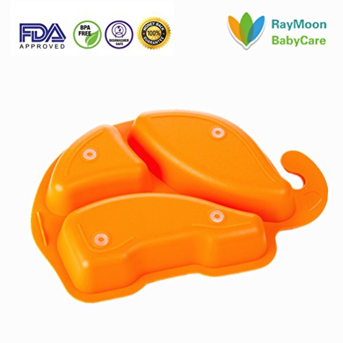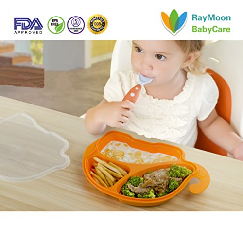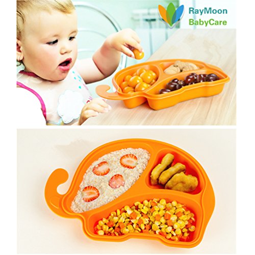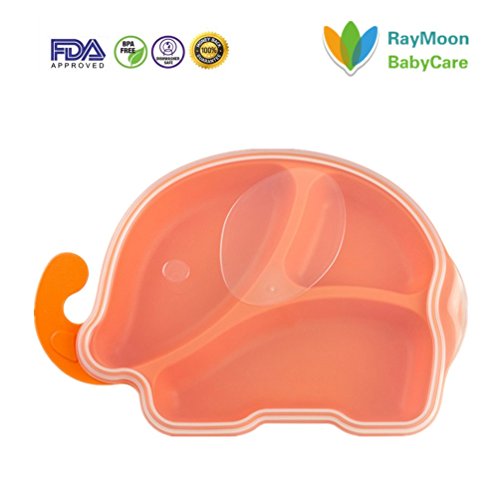 Raymoon ベビー用品 食器 ランチプレート シリコン 離乳食 ベビー食器 赤ちゃん キッズ 防水 滑り止め 可愛い象型 丸洗い 出産祝い プレゼント ふた付き オレンジ