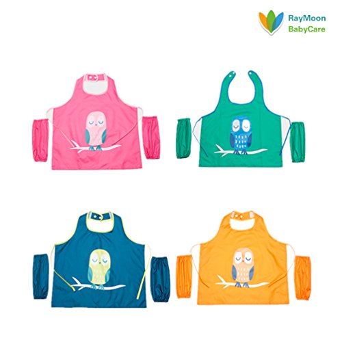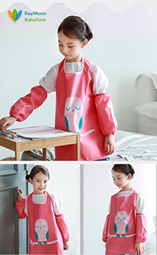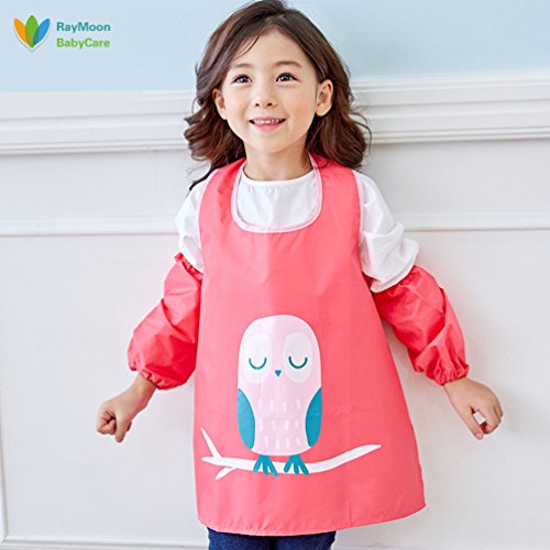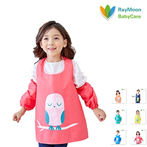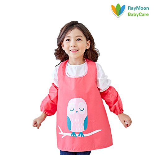 Raymoon おしゃれ 防水 防汚 幼稚園 小学生 子供エプロン 安全 絵画、食事や泥遊びなど利用可 ノースリーブ 腕カバー付き レッド