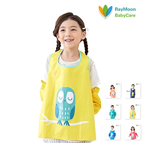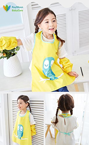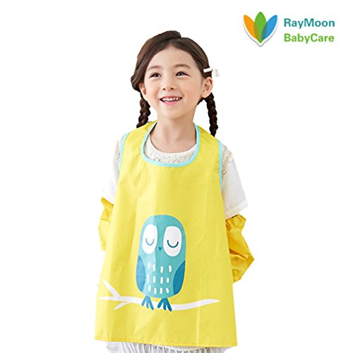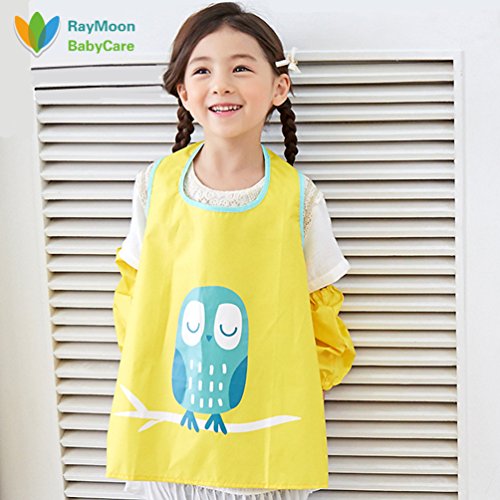 Raymoon おしゃれ 防水 防汚 幼稚園 小学生 子供エプロン 安全 絵画、食事や泥遊びなど利用可 ノースリーブ 腕カバー付き イエロー