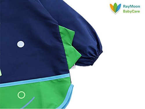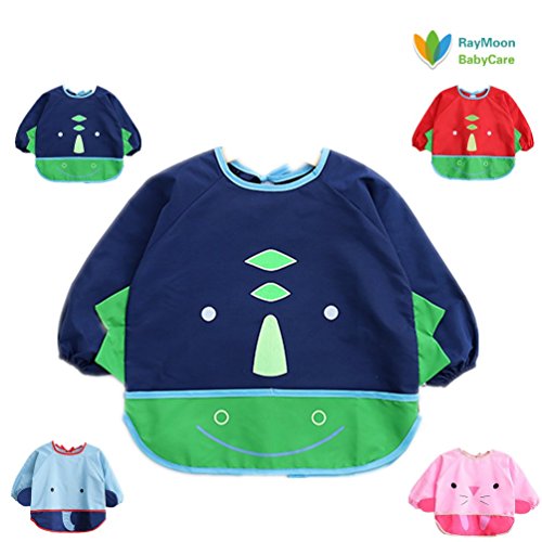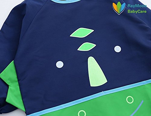 Raymoon かわいい動物柄 防水 防汚 子供エプロン スモック式 ポリエステル製 絵画、食事時利用可 キッズ 長袖 保育園 ポケット付き ピンク