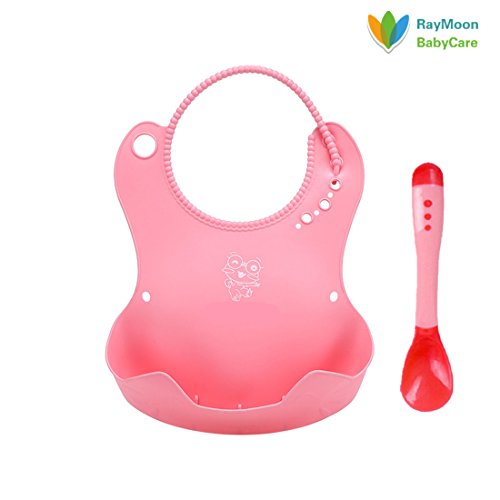 Raymoon 食事用 可愛い 防水 エプロン ベビーソフトスタイ シリコン 大きいポケット付き 軽くて柔らかい 食事こぼしキャッチ 持ち運び便利 贈り物 出産祝い 洗いやすい キャラクター ピンク