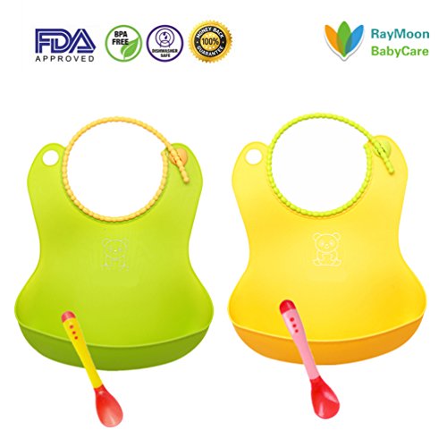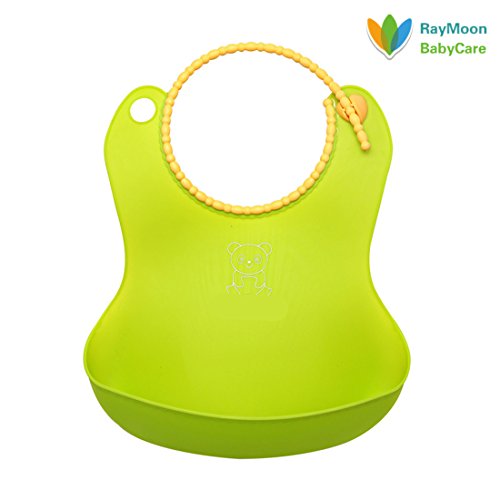 Raymoon 可愛い食事用 防水 エプロン ベビーソフトスタイ シリコン 大きいポケット付き 軽くて柔らかい 食事こぼしキャッチ 持ち運び便利 贈り物 出産祝い 洗いやすい 動物図案付き