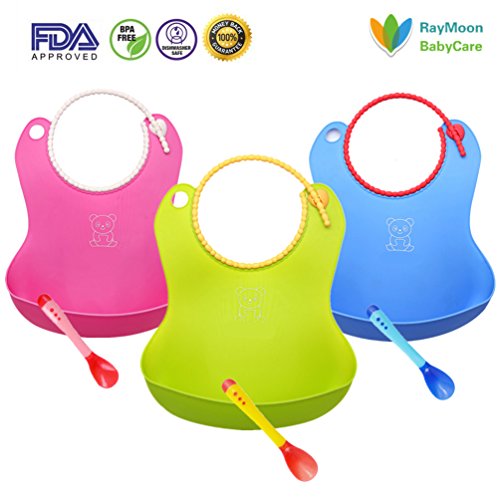 Raymoon ベビー用 食事スタイ エプロン キッドビブ シリコン ポケット付き 軽くて柔らかい 食事こぼし防止 持ち運び便利 贈り物 出産祝い 誕生日 洗いやすい 3セット