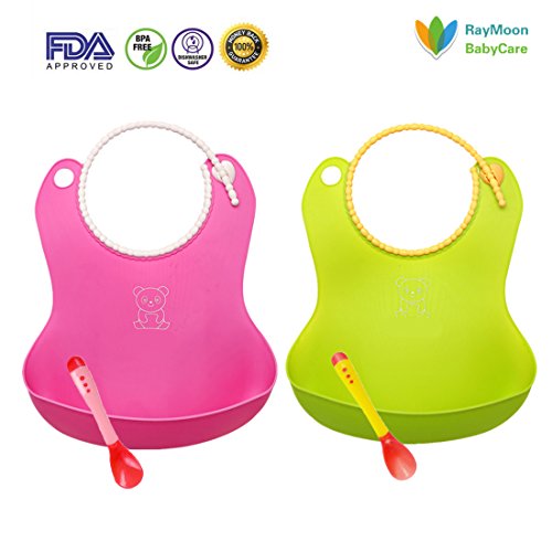 Raymoon ベビー 食事用スタイ エプロン 赤ちゃんビブ シリコン製 大きいポケット付き 軽くて柔らかい 食事こぼしキャッチ 持ち運び便利 プレゼント 出産祝い 洗濯可 防水 通気性 調整可能