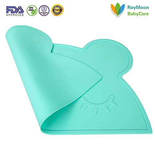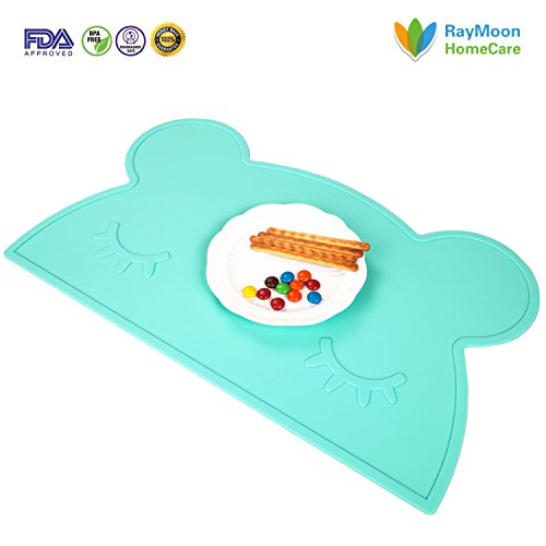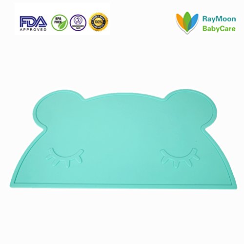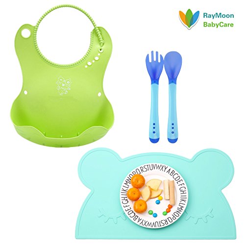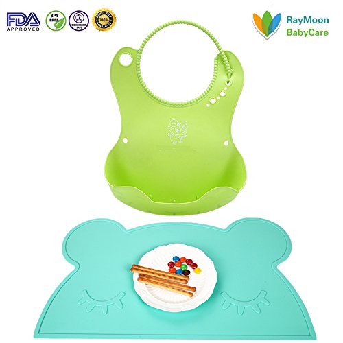 Raymoon ベビー 子供用 食事用 シリコン 防水 離乳食 エプロン 食事マット ランチョンマット キッズ 大きいポケット付き 軽量 可愛い動物柄 食事こぼしキャッチ 持ち運び便利 誕生日 プレゼント 出産祝い 前掛け 袖なし 丸洗い可 食べこぼし防止 滑り止め フォーク スプーン付き