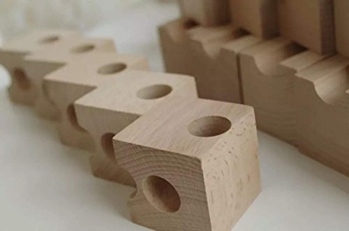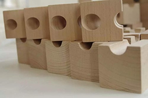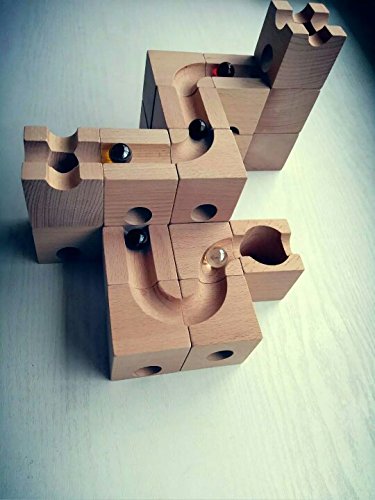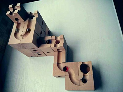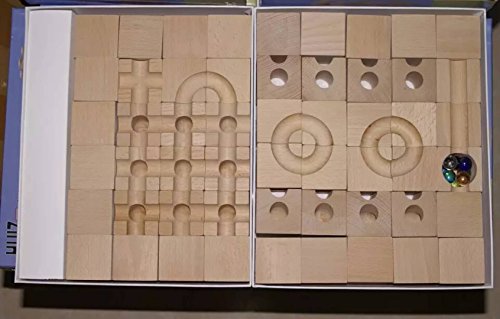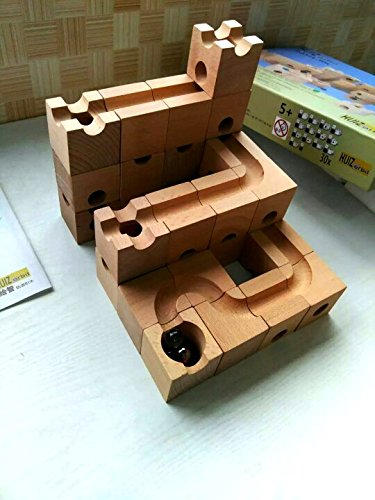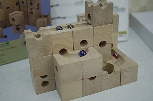 穴の開いたブロックをつなげてコースを作り、ビー玉を通す道を作るおもちゃです。 子どもだけでなく、大人も夢中になってしまう楽しいおもちゃ。 ビー玉がどうやって転がっていくか、ブロックの中をトンネルのようにビー玉がくぐっているのを想像しながらゴールを目指しましょう。 これはこのおもちゃでしかできない奥深さがあり、子供から大人まで幅広く遊べるおもちゃです。 頭の中で図を想像しビー玉が止まらないようにゴールまで行くにはどうしたらいいのだろう?と遊びの中で感覚的に構造を理解し、さらに応用し閃いていく事ができたら、楽しみながら頭の体操ができますね。 木で作られた立方体のブロックには、平面に溝があるタイプ、トンネルが空いているタイプ、中央に穴が開いているものなど色々なタイプのブロックがあります。 それらを組み合わせ、様々な道やトンネルを通ってビー玉がスタートからゴールまで見事に転がったときの達成感は大人も十分に楽しませてくれます。 もちろん、ビー玉が行き止まりになってしまったり、脱線してしまったら失敗です。 「うちの子には難しくないかしら」「本当に遊んでくれるのかな?」なんて不安もおありでしょうが、 ほとんどのお子様が驚くほどの集中力で夢中で遊んでくれます。親御さんの方が楽しんでいるパターンも多くあります。 お子様の集中力・創造力を養い、遊びの時間も有意義になることでしょう。 また長い年齢お遊びいただけます。年齢が大きくなったら追加パーツで難しいものにもチャレンジしてみましょう! こちらのセットには、13種類54個のブロックが入っています。初めてご購入される方におススメです。 ビー玉を使用しますので、誤飲の恐れがございますので、3歳未満のお子さまには一人で遊ばせないようお気をつけ下さい。