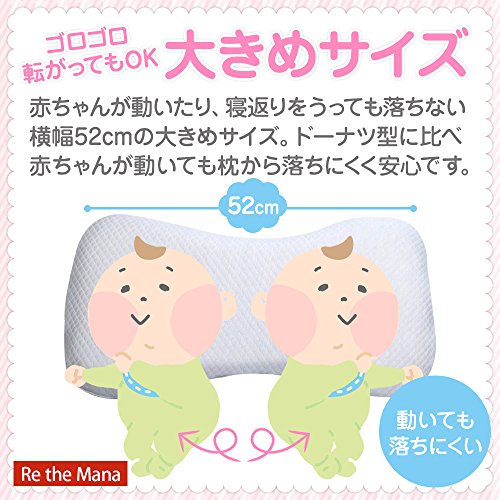 - 【大きめサイズ】赤ちゃんが動いたり、寝返りをうっても落ちない52cmの大きめサイズ。ドーナツ型に比べ赤ちゃんが動いても枕から落ちることが少なく安心です。頭の部分は少しくぼみになっていて寝やすく設計されています。