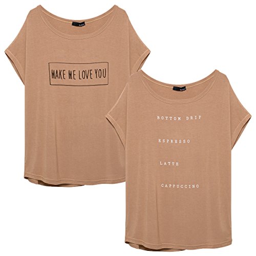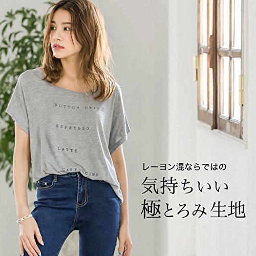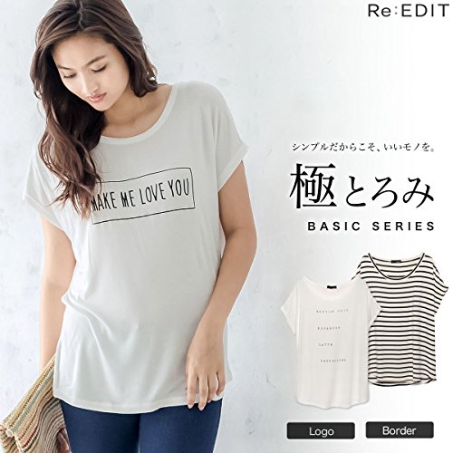 ReEDIT(リエディ)Tシャツ カットソー ロゴT ボーダー柄 とろみ ゆったり 体型カバー ストレッチ ドルマン MAKE ME(009) キャメルベージュ(007)