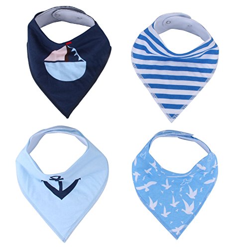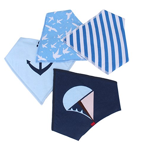 4枚セット カラフル 幼児 赤ん坊 三角 スナップ サイズ調整可能 バンダナ 型 スナップ 式コットン スタイ エプロン タオル ユニセックス セーリング/鳥/横ストライプ/船アンカーパターン