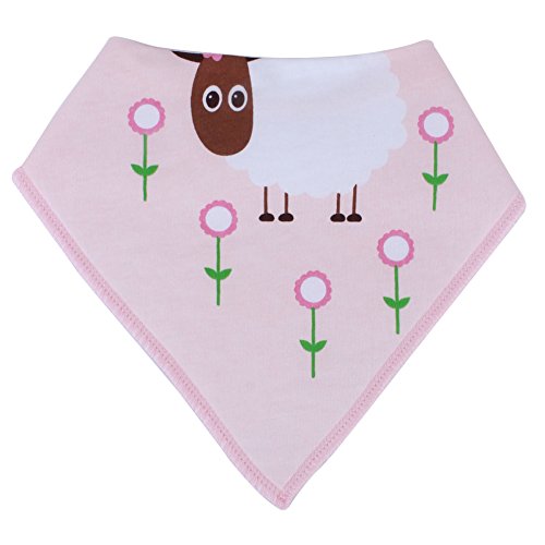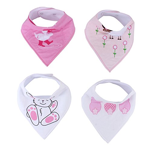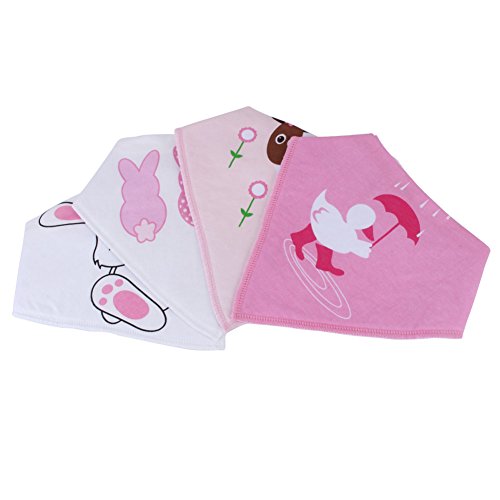 4枚セット カラフル 幼児 赤ん坊 三角 スナップ サイズ調整可能 バンダナ 型 スナップ 式コットン スタイ エプロン タオル ユニセックス 傘をさす鴨/大白兎/羊/兎背中パターン