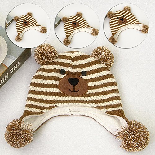 Refaxi ベビーキッズかわいい漫画テディベアかぎ針編みのフリースキャップ冬暖かいイヤーマフ