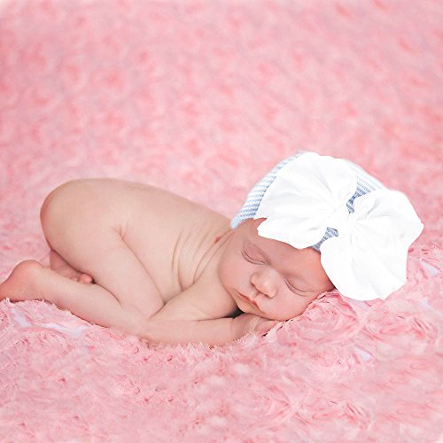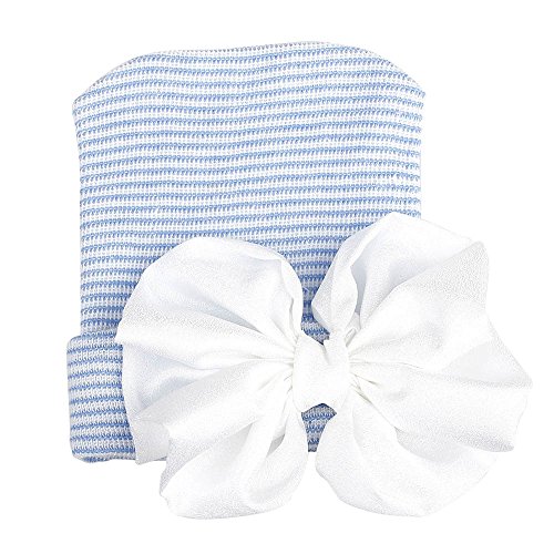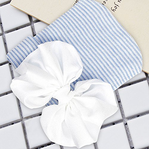 Refaxi 赤ちゃんの女の子新生児の幼児のシフォン弓のタイキャップShripy(ホワイトハット+パウダーノット)とソフト帽子ニット(ブルーキャップ + ホワイトノット)