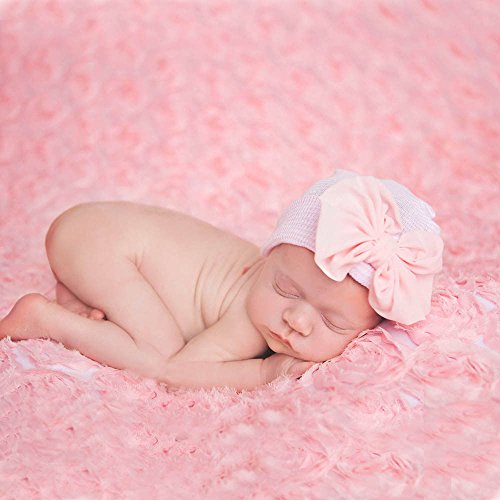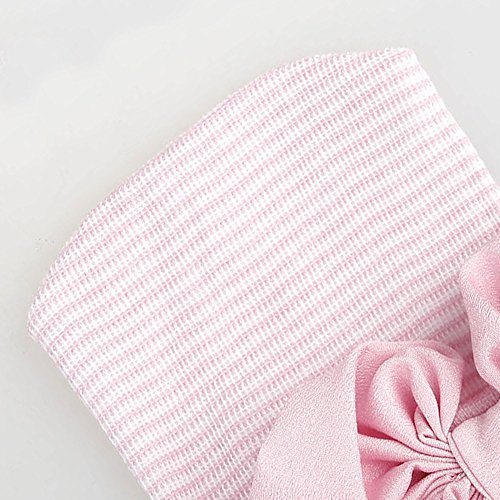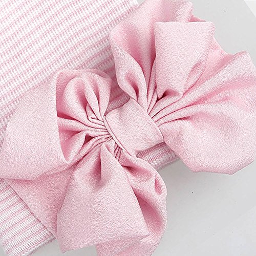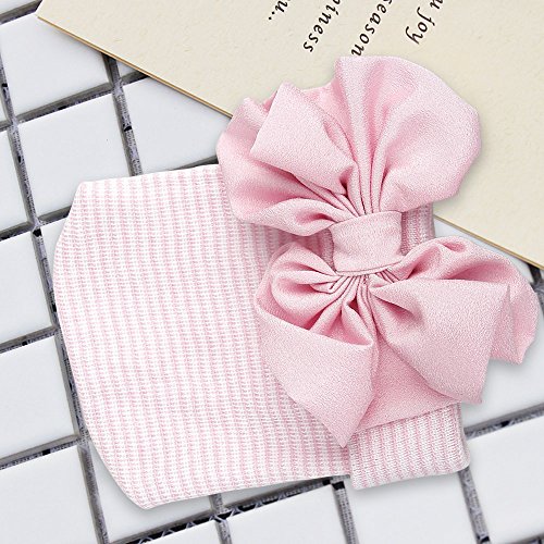 Refaxi 赤ちゃんの女の子新生児の幼児のシフォン弓のタイキャップShripy(ホワイトハット+パウダーノット)とソフト帽子ニット(パウダーキャップ + パウダージャンクション)