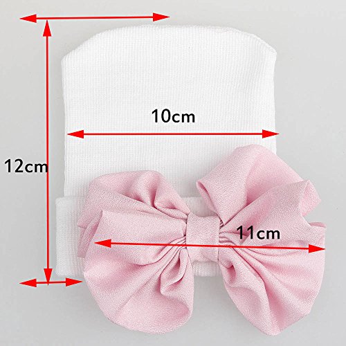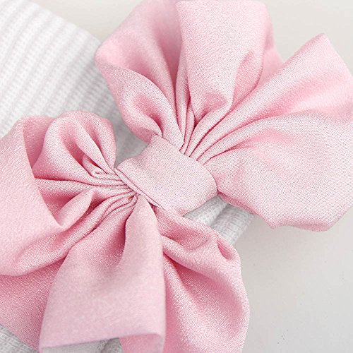 Refaxi 赤ちゃんの女の子新生児の幼児のシフォン弓のタイキャップShripy(ホワイトハット+パウダーノット)とソフト帽子ニット(ホワイトハット + パウダーノット)