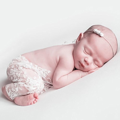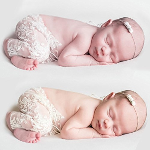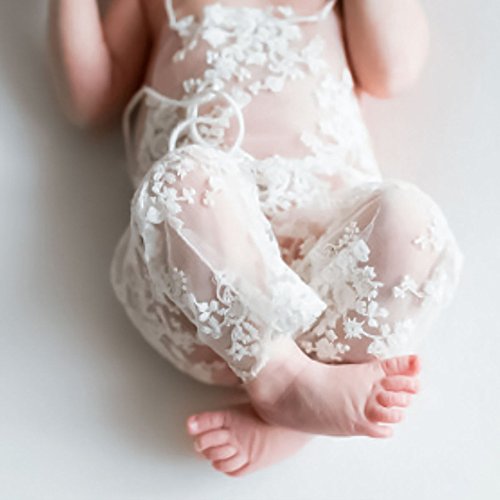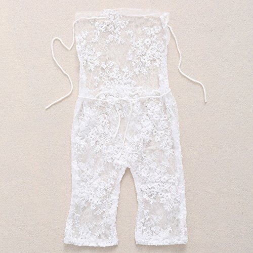 Refaxi 新生児の赤ちゃんの女の子レース花ロンパージャンプスーツキャップ写真プロ写真の衣装(ホワイトハット)