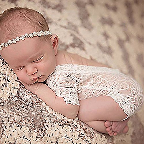 Refaxi 新生児の赤ちゃんの女の子のレース花ロンパージャンプス帽子写真プロップ写真の衣装(ホワイト)