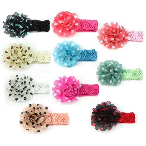 ヘッドバンド 赤ちゃん用 シフォン ドット 10個セット