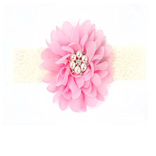 Refaxi カラフルなシフォンローズフリルフラワーラインストーンベビーガールズヘッドバンドヘアアクセサリーキッズズヘッドオーナメント