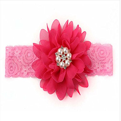 Refaxi カラフルなシフォンローズフリルフラワーラインストーンベビーガールズヘッドバンドヘアアクセサリーキッズズヘッドオーナメント