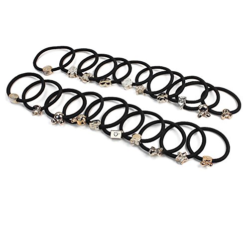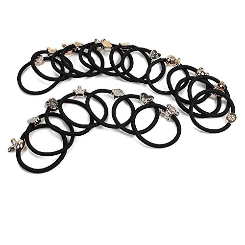 Refaxi 20PCSの女の子かわいい弾性ヘアバンドリングタイロープポニーテールホルダーブラック