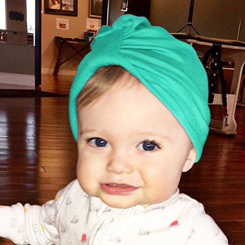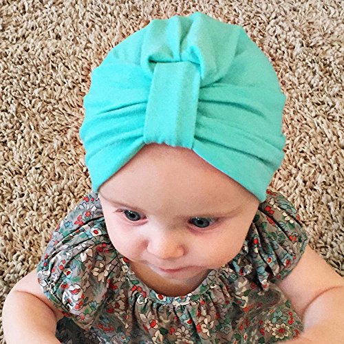Refaxi 新生児の赤ちゃんの女の子弓の結び目の包み帽子の綿の帽子のヘッドバンド(グリーン)