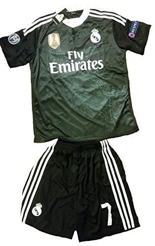 レアルマドリードCristiano Ronaldo # 7 Awayブラックドラゴン大人Soccer Jersey with Shorts S