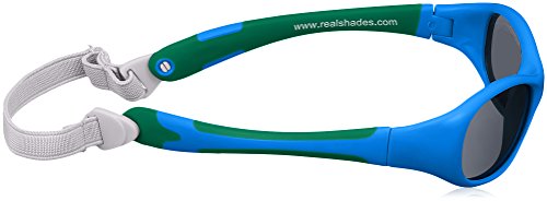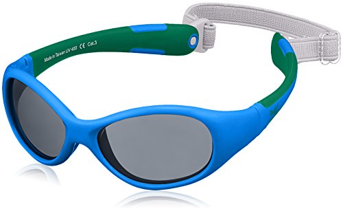 - 壊れにくいフレームと、飛散防止設計が施されたレンズ。UVA/UVB99%カット。バンド取り外し可能。