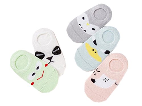 リアルスタイル)Real Style 夏 ベビー 幼児用 キッズ 子供 かわいい 動物 キャラクター フットカバー 靴下 ソックス スニーカーソックス 5足 セット 滑り止め付き 男の子 女の子