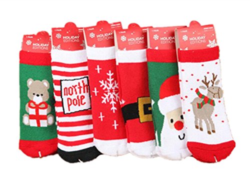 (リアルスタイル)Real Style キッズ 子供 靴下 ソックス クリスマス サンタクロース クマ ジュニア 6足 セット ベビー 幼児用 キッズ クルー丈 カラフル 女の子 男の子 厚め