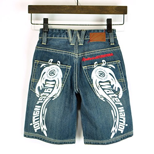 リアルビーボイス(RealBvoice)2090606 Kid's DENIM PANTS SHORTS キッズデニムパンツ プリントデニムショートパンツ ハーフパンツ ハーパン 子供用 (110, DENIM BLUE)